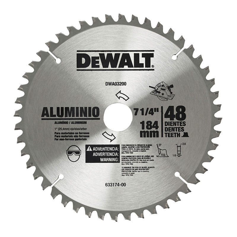 [DWA03200] -Disco De Sierra, 7-1/4 Pulg, P/Aluminio, 48 Dientes De Carburo, Eje 1 Pulg Y Adaptador De 5/8 Pulg. Marca Dewalt