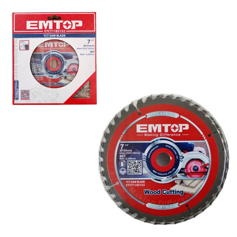 [ETCT1185152] -Disco De Sierra, 7-1/4, Eje De 20 Mm Con Reductor A 16 Mm, 40 Dientes De Carburo, Para Madera. Marca Emtop