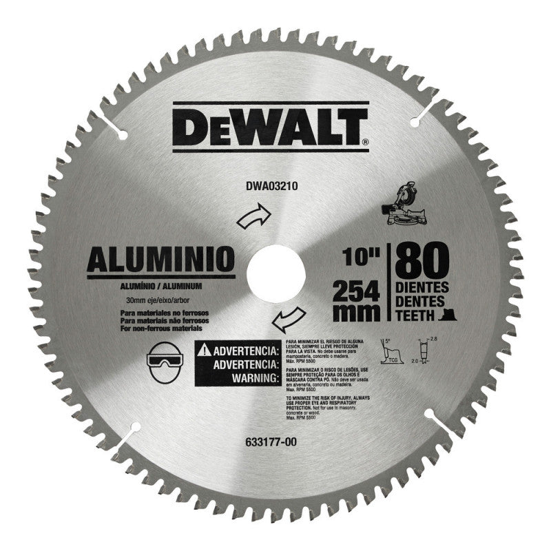 [DWA03210] -Disco De Sierra, 10 Pulg, Eje 30 Mm Adaptador De 1, 5/8, 3/4 Pulg, 80 Dientes De Carburo, P/Aluminio. Marca Dewalt