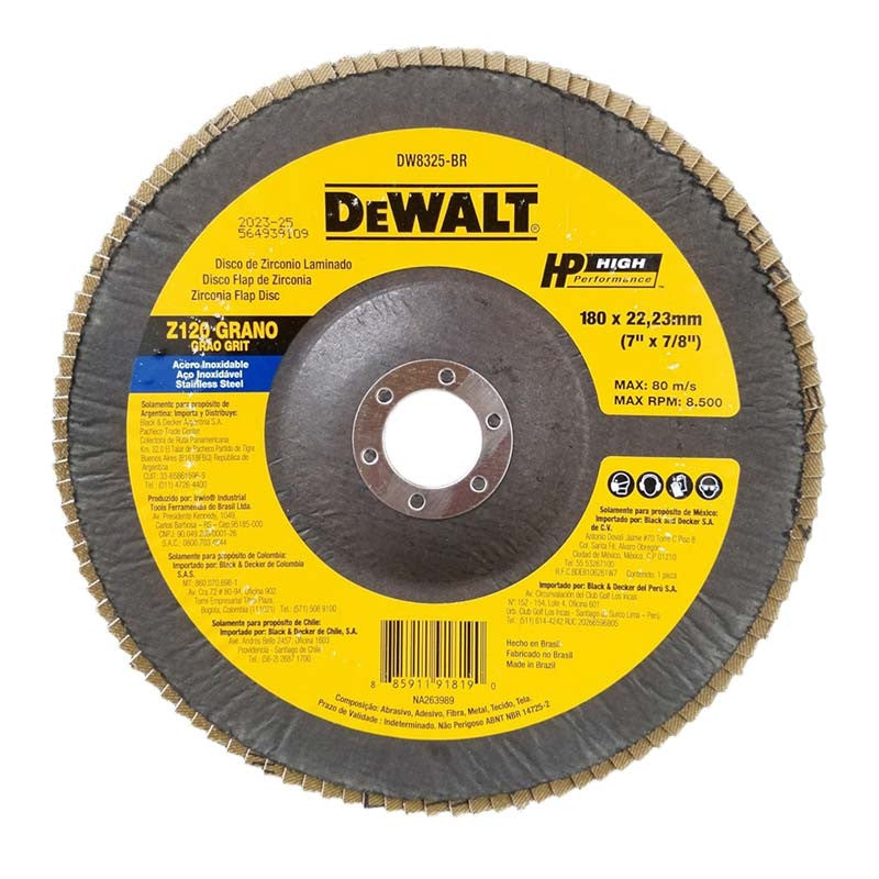[DW8325-BR] -Disco De Zirconio, 7 Pulg X 7/8 Pulg, Grano 120, Flap Disc. Marca Dewalt